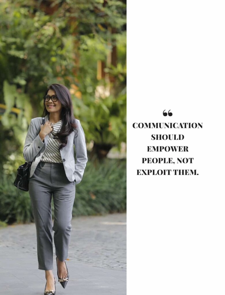 Storytelling plays a central role in her approach to branding and communication. She considers storytelling to be the core of meaningful engagement, as it allows brands and individuals to connect with audiences on a human level. Personal branding, in her view, is not about excessive self-promotion. Instead, it is about clarity, authenticity, and alignment between values and actions. When stories are honest and grounded in purpose, they foster trust and long-term relationships rather than short-term attention.